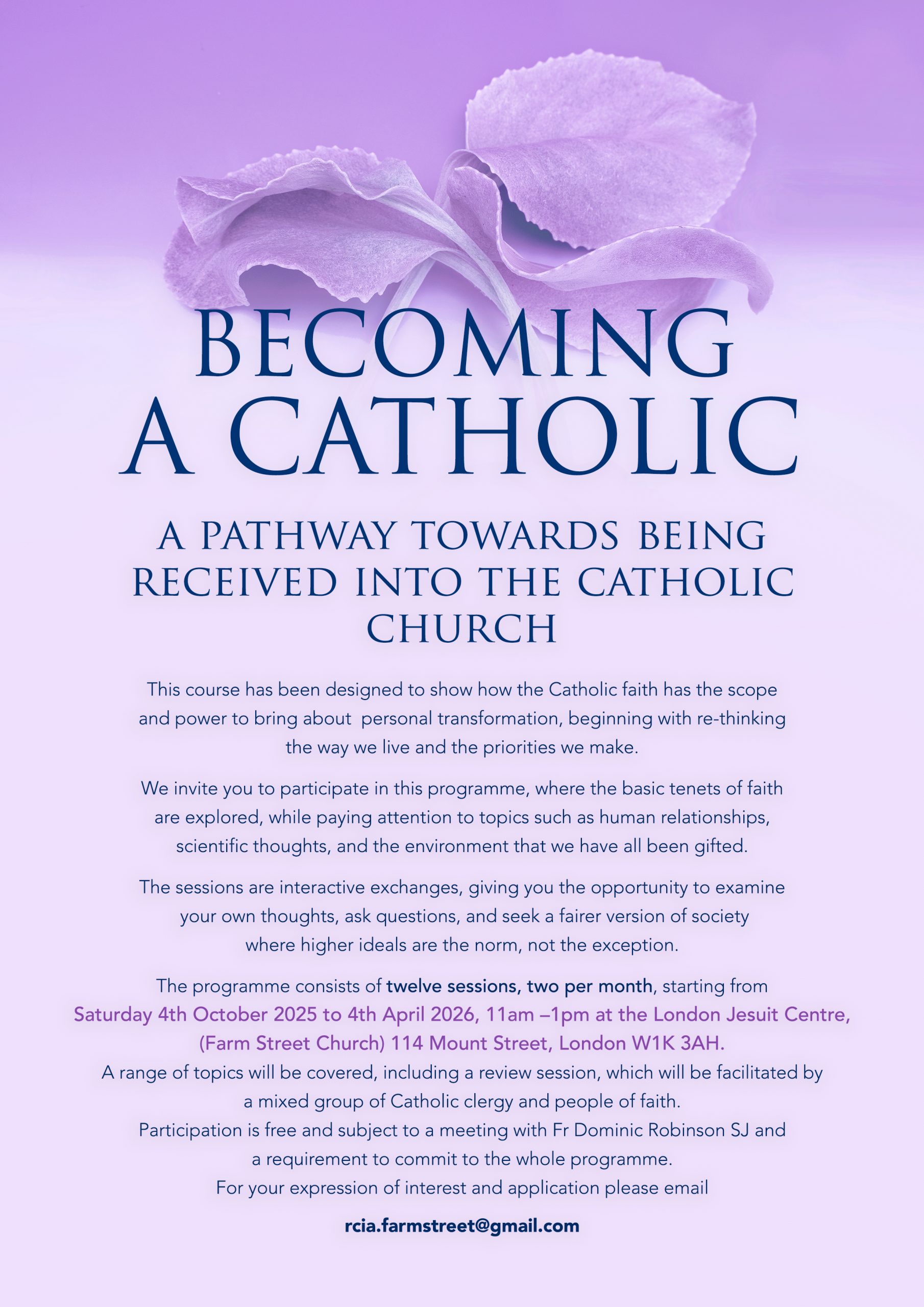 If you interested in doing RCIA, please email rcia.farmstreet@gmail.com for an application form
